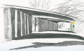 with pigment (the foliage and shadows in this sketch), I became aware of